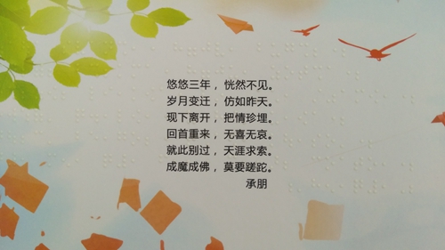 感謝所有為“盲文畢業(yè)紀(jì)念冊(cè)”做出奉獻(xiàn)的人,因?yàn)槟銈?,世界更美麗。掃描封面二維碼,聆聽2018屆貳家畢業(yè)班同學(xué)的校園故事,不知不覺,熱淚盈眶,感動(dòng)之余,我明白了“讓印刷走進(jìn)千家萬(wàn)戶,為幸福生活添色加彩”的真實(shí)含義。